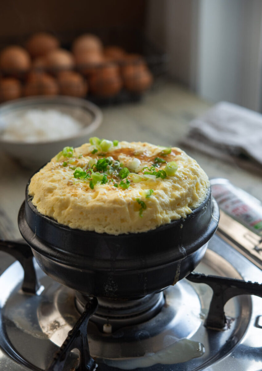폭탄처럼 솟은 계란찜을 보실 수 있습니다.