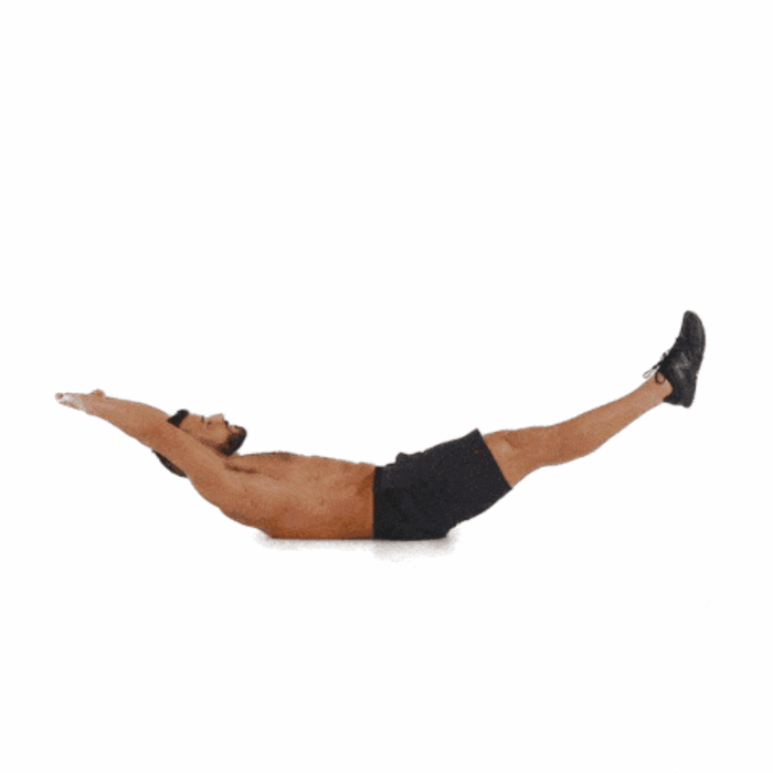 어깨와 머리, 다리를 공중으로 들어 올려 뻗습니다.